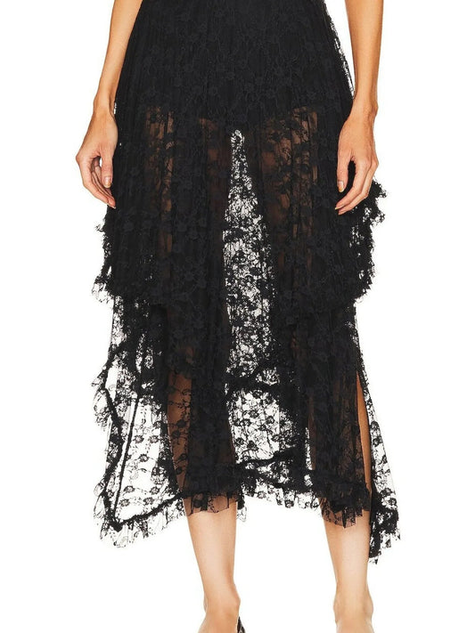 Asymmetrical Lace Midi Skirt